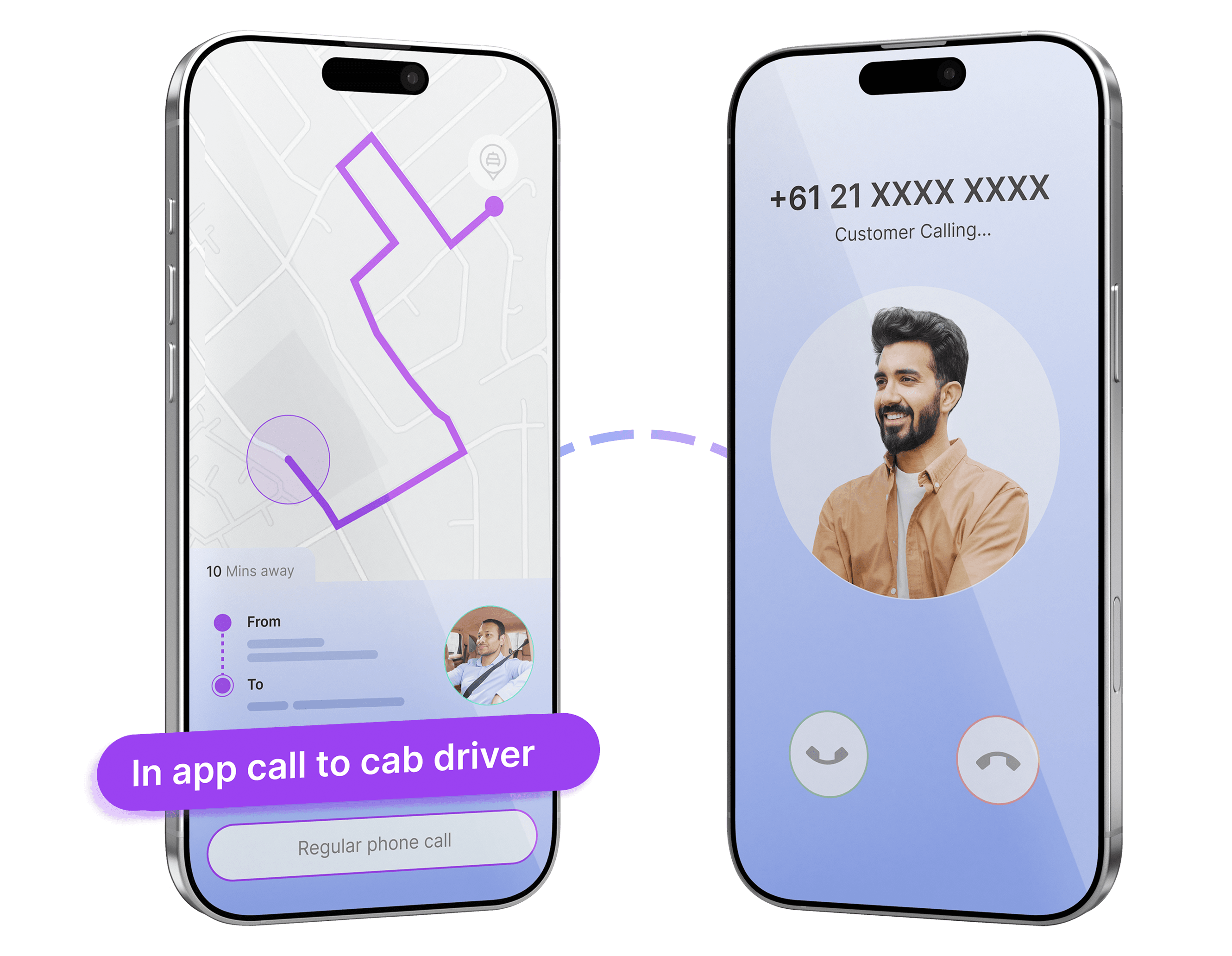 Example: Call your cab driver via the app with number masking, keeping your contact details private.