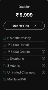 Most of our customers (80%) use the “Dabbler plan”. So I’ll use that as the anchor to explain the pricing. Here’s what you would pay Exotel in a Dabbler plan: