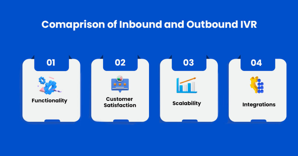 While both the inbound and outbound IVR systems look similar, there are several differences between the two. Let’s consider the following factors to compare the two IVR types.